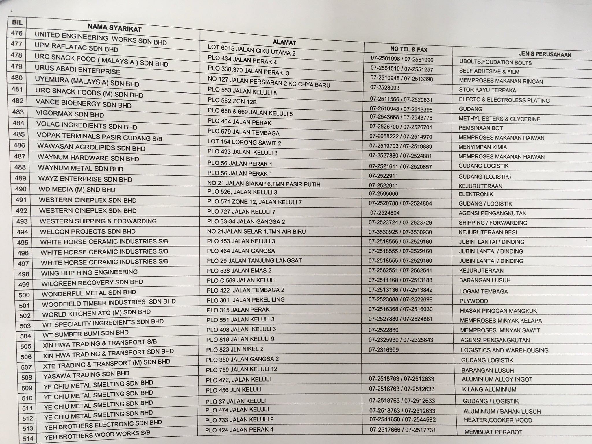 Senarai Kilang Di Shah Alam