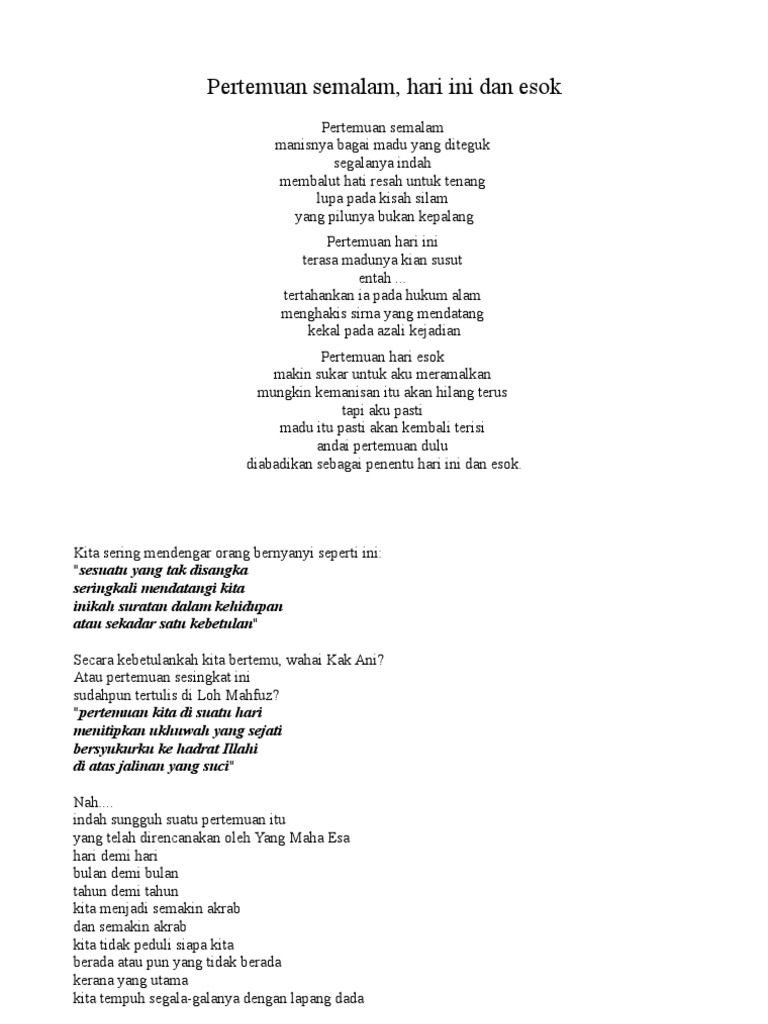 Pertemuan Semalam Hari Ini Dan Esok