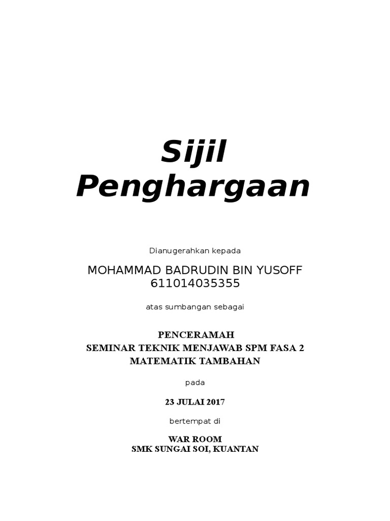 Best Sijil Penghargaan Documents Scribd