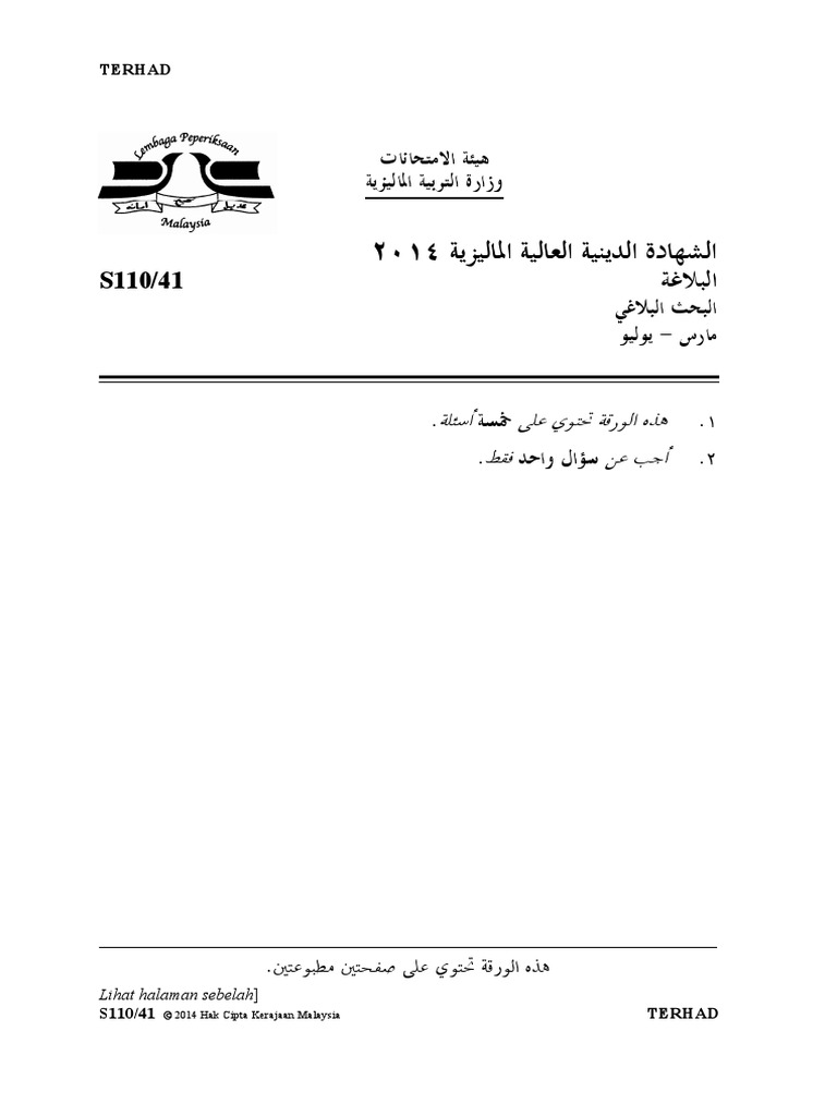 Kerja Kursus Sijil Tinggi Agama Malaysia Stam 2014 Balaghah
