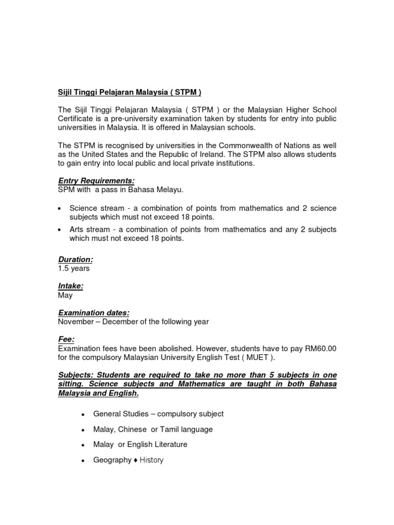 Sijil Tinggi Pelajaran Malaysia Stpm Entry Requirements