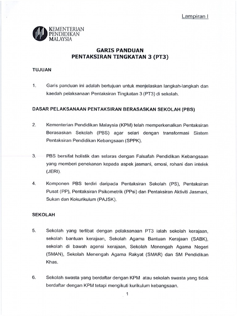 Panduan Pt3 Lampiran 1 Pdfآ Lampiran I Kementerian Pendidikan Malaysia Garis Panduan Pentaksiran Tingkatan Pdf Document