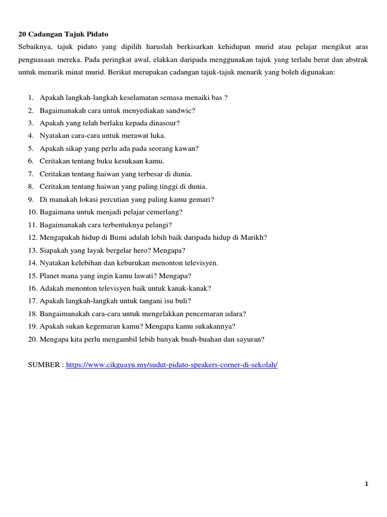 Contoh Sudut Pidato Di Sekolah Kumpulan Soal Pelajaran 1