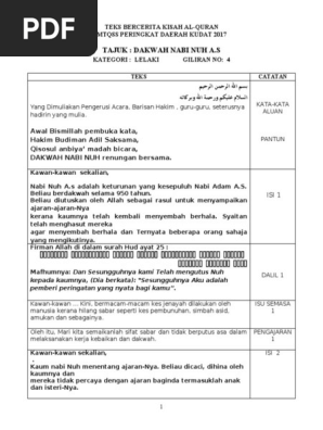 Tajuk Dakwah Nabi Nuh A S Teks Bercerita Kisah Al Quran Mtqss Peringkat Daerah Kudat 2017