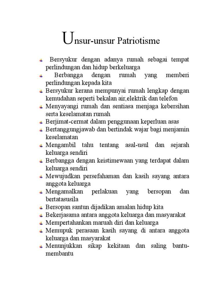 Rumusan Pengetahuan Nilai Unsur Unsur Patriotisme Dan Harapan