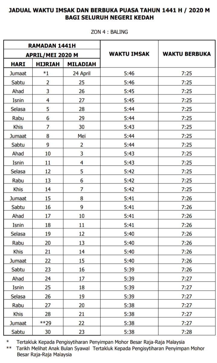 Jadual Waktu Imsak Dan Berbuka Bagi Seluruh Negeri Kedah Tahun 2020 Ira Mommy Si Kembar