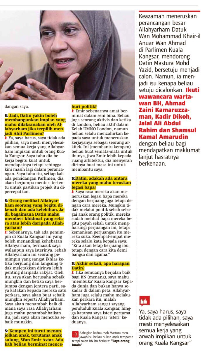 Ahmad B Maslan Twitterren Bharian 8 6 16 Prkkualakangsar Calon Datin Mastura Binti Tan Sri Mohd Yazid Ingin Teruskan Usaha Baik Arwah Suami
